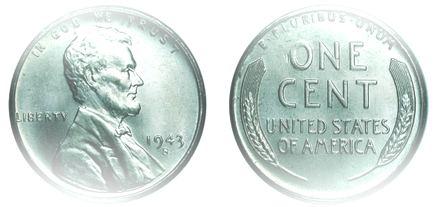 - The first “steel pennies” are manufactured in the United States. Because of the need for copper to be used for the war effort, the one cent piece is made of steel with a thin zinc plating to prevent rust.