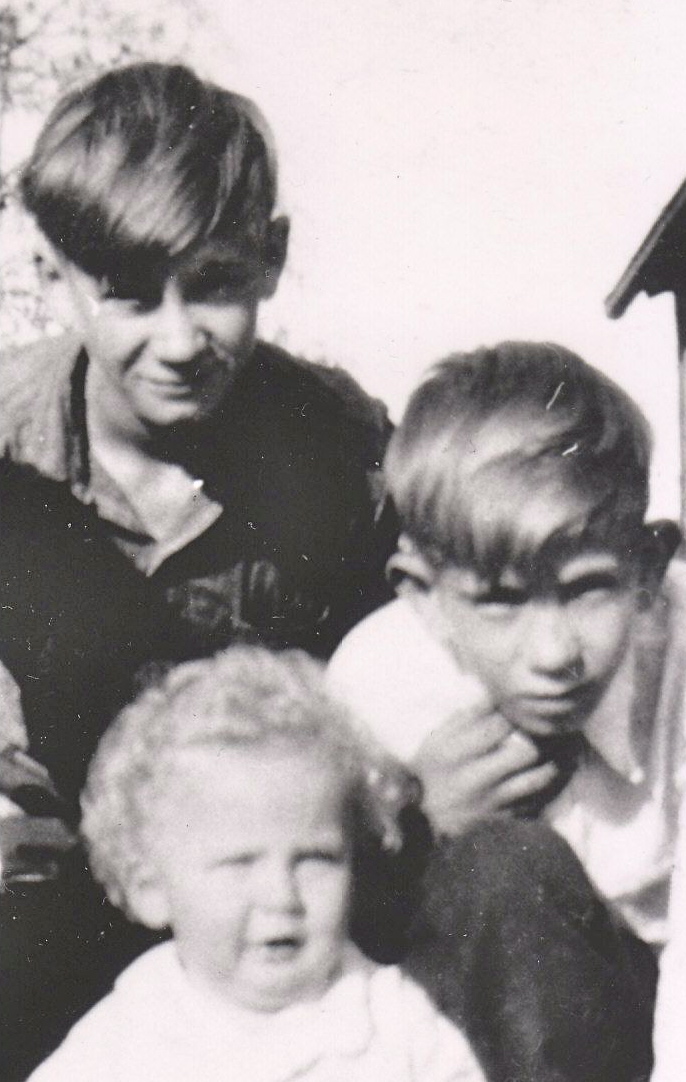 what a great guy he was – I wish I had known him, but I was too little – that’s me, btw, sitting on the tree branch – left to right, Fanny, Annie, Pat, Victor, Sam, Mom – we were out looking for mushrooms