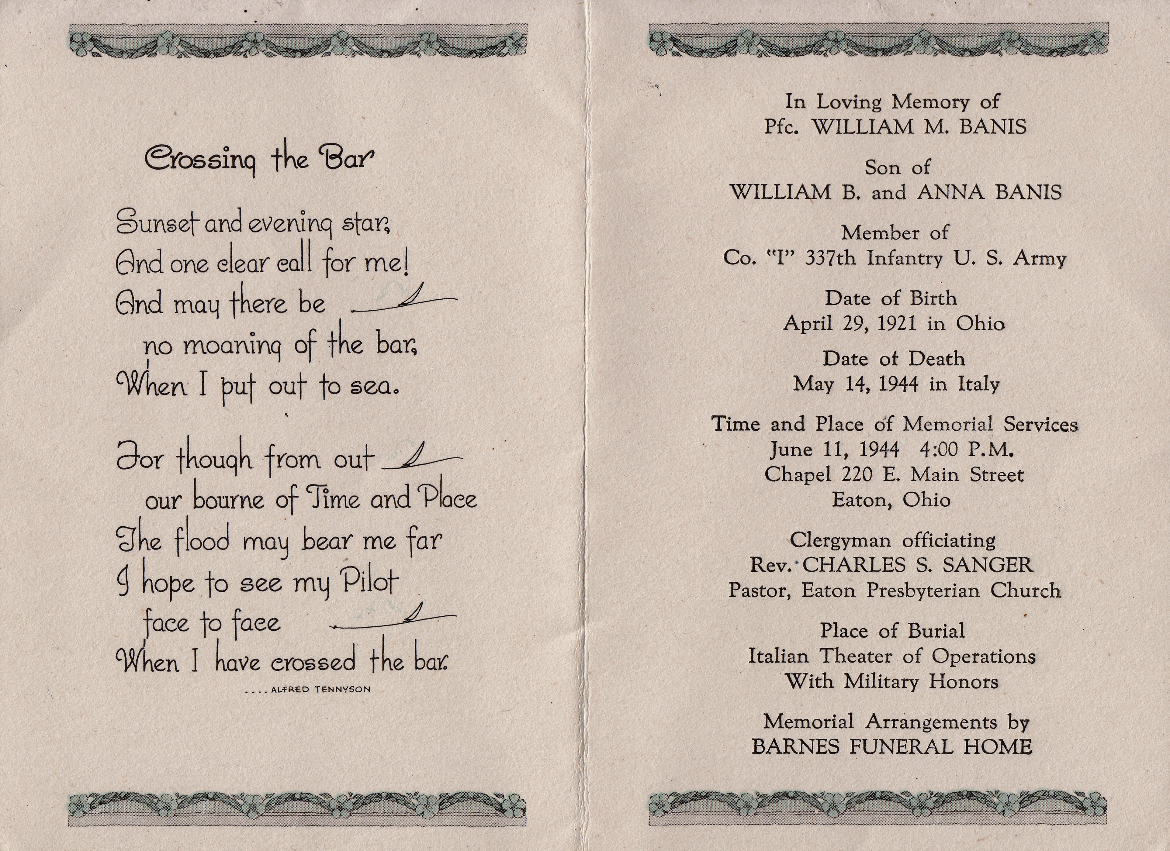 memorial service card