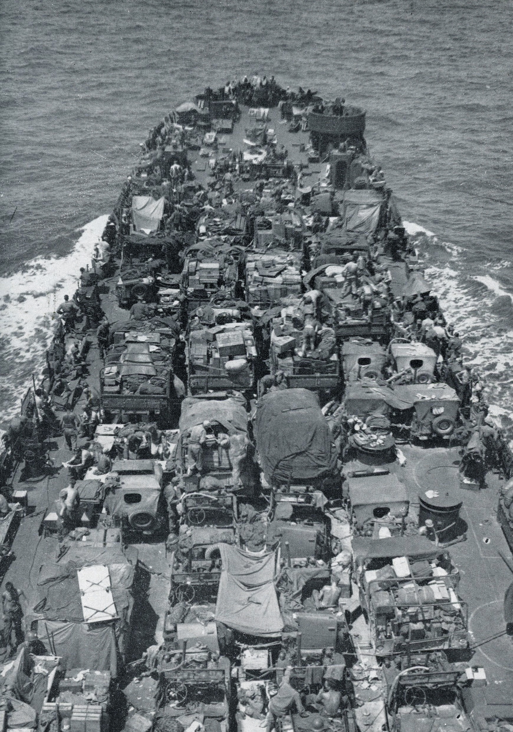 On December 27, the assault force began to leave the Naval base.  The operation was supported by 818 combat vessels including seven battleships, seven cruisers, and thirty-two destroyers.  The convoy maintained nine knots.  On the fourth day at sea, US fighter planes joined the convoy.  Now USAF Black Widows, Thunderbolts and Lightnings circled the convoy continuously.  January 6, 1945, Bill Nance celebrated his 24th birthday.
